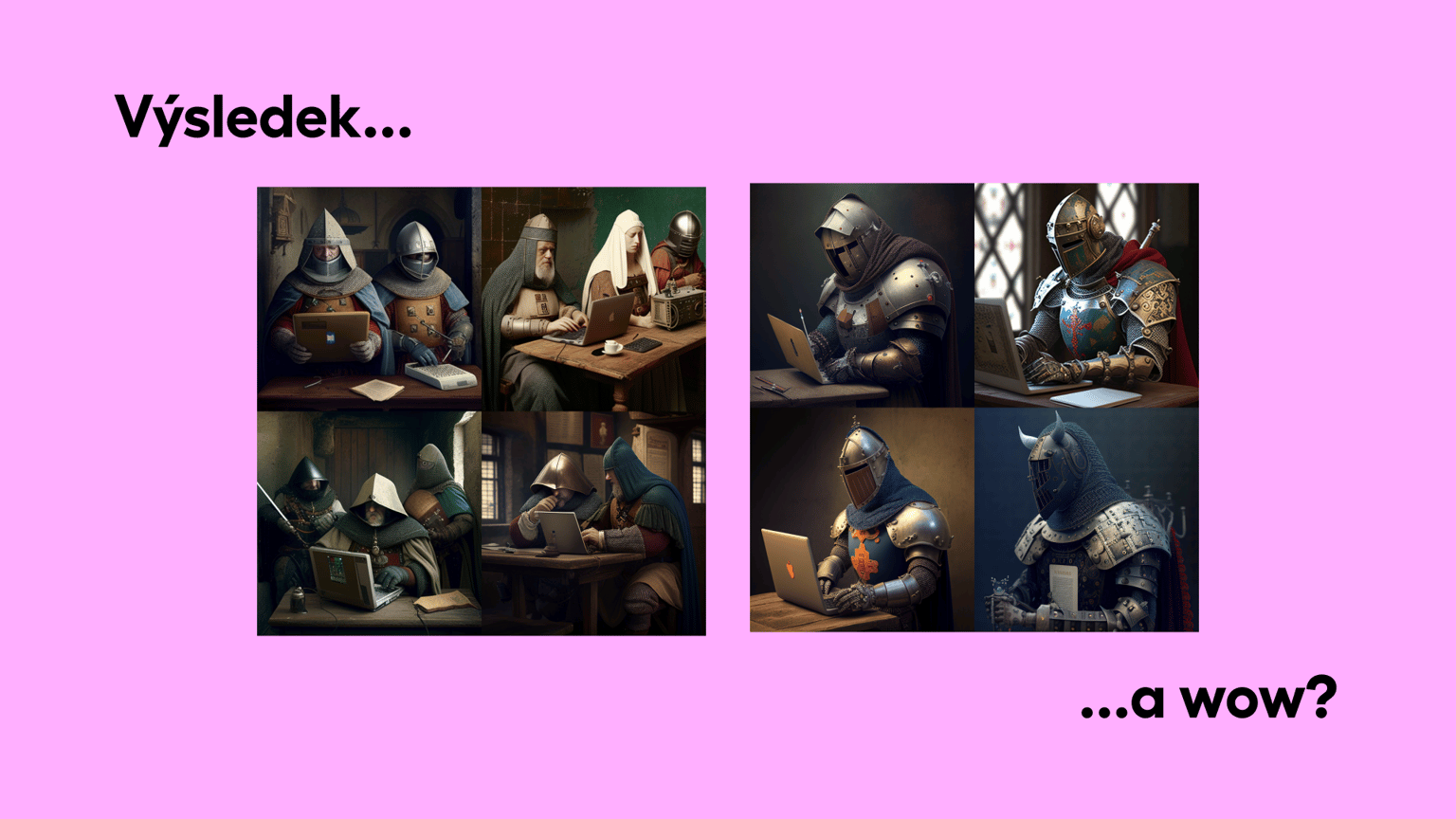 Vezmeme třeba 4 povolání ze starých středověkých časů a náhodně je mixneme se současnými buzzwordy z technologického odvětví. Středověká povolání - Lovčí, rytíř, tesař, hofmistr Technologické buzzwordy - Data, strojové učení, cloud, umělá inteligence